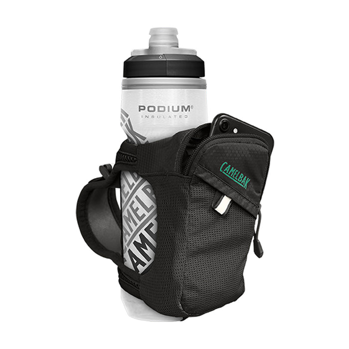 Hidratación y almacenamiento esencial al alcance de tu mano. Ideal para corredores que buscan una opción ligera sin el equipaje adicional de un chaleco, la Podium® Chill™ se adapta a la palma de tu mano y ofrece un chorro de alto flujo gracias a la tecnología Jet Valve™.